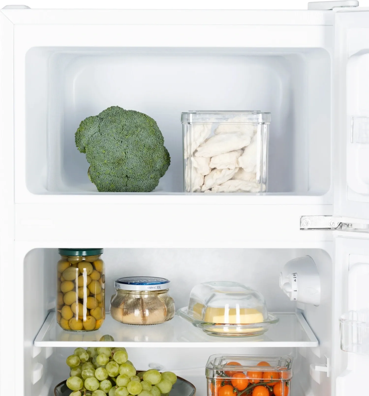 2 дверные полки подойдут для размещения молочных продуктов, напитков и упаковок;