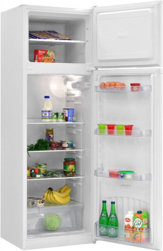 Двухкамерный отдельностоящий холодильник NORDFROST NRT 144 032 с верхним расположением морозильной камеры имеет общий объем 330 литров и высоту 177 см.