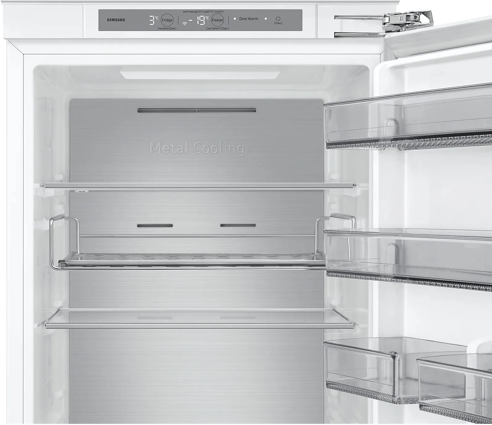 Зона Cool Select+ позволяет вам настроить холодильник в соответствии с вашими текущими потребностями, регулируя температуру морозильника для определенного типа продуктов. Вы можете превратить морозильник в холодильник, если вам нужно хранить более крупные покупки или выбрать режим охлаждения или легкой заморозки. Просто выберите режим охлаждения (2°C), заморозки (-1°C), деликатной заморозки (-5°C) или заморозки (-15-23°C) в соответствии с вашими потребностями.
