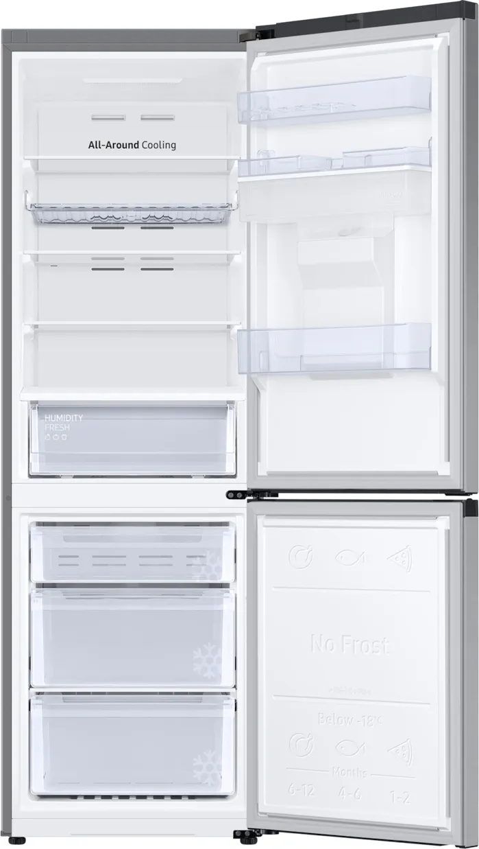 Охлаждение организовано с использованием современных технологий для стабильной температуры. Система Multi-flow распределяет холод равномерно по всем полкам, а технология No Frost исключает появление инея и льда, тем самым избавляя от необходимости ручной разморозки. Инверторный компрессор снижает энергопотребление и уменьшает уровень шума до 35 дБ, а технология SpaceMax обеспечивает больший внутренний объем без утолщения стенок корпуса. Режимы SuperCool и SuperFrost быстро понижают температуру при загрузке свежих продуктов.