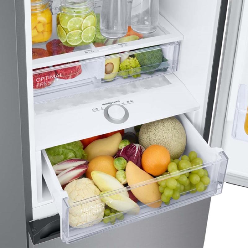 Холодильник Samsung RB38T676FSA позволяет регулировать температуру лёгким прикосновением к сенсорной панели на наружной стороне дверцы. Он поддерживает заданные настройки с точностью до градуса, создавая идеальные условия для хранения скоропортящихся продуктов. ОПТИМАЛЬНЫЙ МИКРОКЛИМАТПоворотная ручка позволяет регулировать влажность в зоне свежести. Благодаря этому вы можете сохранить естественный вкус мяса и рыбы, сыра и копчёностей, овощей, фруктов и зелени. ИНВЕРТОРНЫЙ КОМПРЕССОРХолодильник соответствует классу энергопотребления А+. Кроме того, он работает очень тихо, не нарушая спокойствие даже в квартире-студии и малогабаритных апартаментах. ПРОДУМАН ДО МЕЛОЧЕЙКачественная теплоизоляция защищает продукты от нагрева в течение 18 часов после отключения питания. Плоская задняя стенка с кабель-каналом позволяет ставить устройство вплотную к стене. TOTAL NO FROSTХолодильник предотвращает образование льда и инея на внутренних стенках. Вы можете забыть об утомительной ручной разморозке.