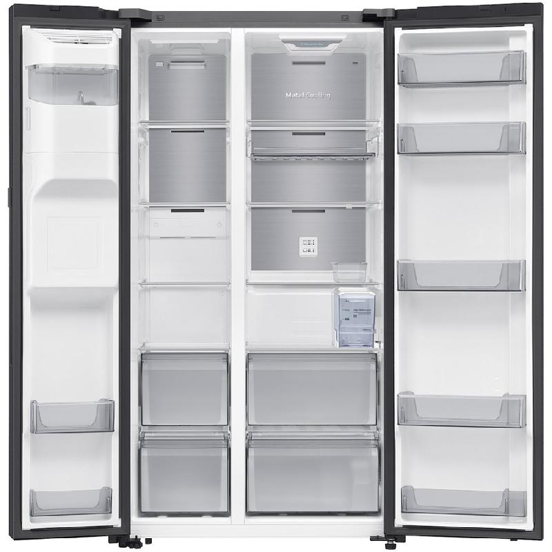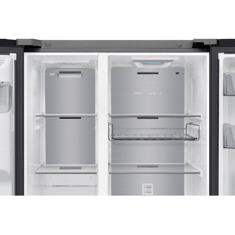 Холодильник Samsung RS80F65J1FWT — это вместительная модель премиум-класса с системой No Frost, которая предотвращает образование наледи. Устройство оснащено многопоточной одноконтурной системой охлаждения и технологией All-around Cooling, обеспечивающей стабильную температуру по всему объёму холодильника. Ключевые особенности включают инверторный компрессор и технологию Metal Cooling для быстрого восстановления температуры. Управление осуществляется через сенсорный дисплей, а энергоэффективность соответствует классу A+.