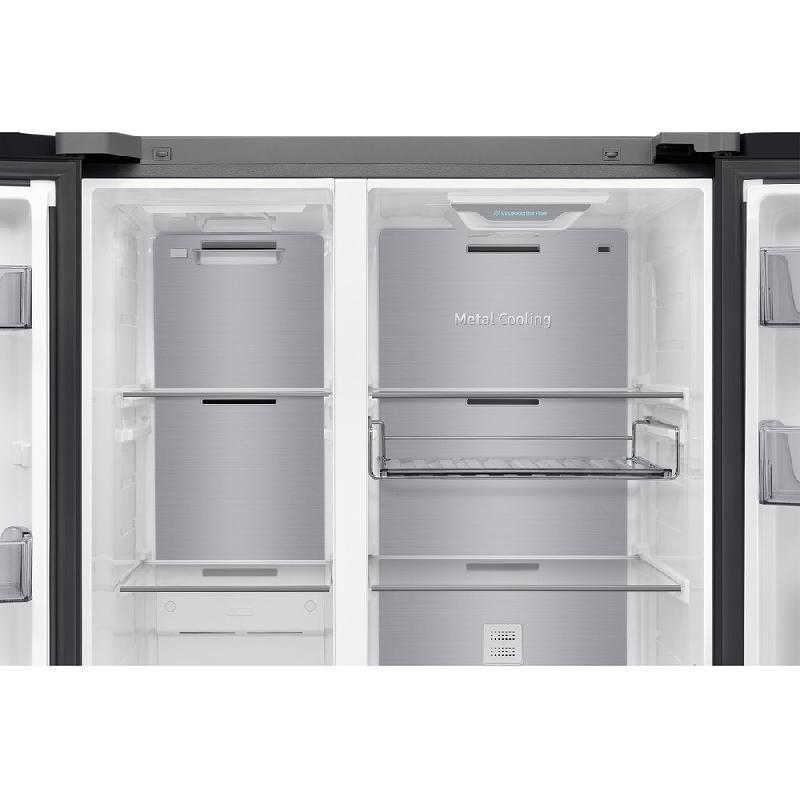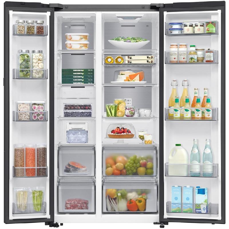 Холодильник Samsung RS80F65M1BWT — премиальная модель с системой No Frost и многопоточной одноконтурной системой охлаждения. Она поддерживает стабильную температуру по всему объёму благодаря технологии All-around Cooling. Инверторный компрессор и Metal Cooling быстро восстанавливают температуру при открывании дверцы. Управление через сенсорный дисплей интуитивно понятно, а энергоэффективность соответствует классу A+.