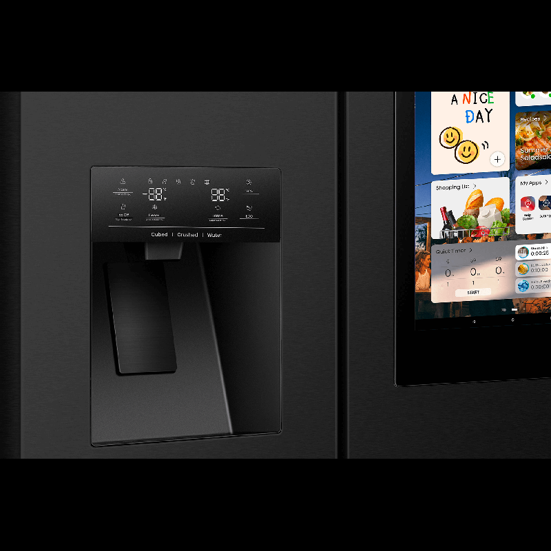 Корпус из металла с защитой от отпечатков, скрытой ручкой и мягким закрыванием дверей выглядит стильно и элегантно. Модель оснащена колесиками для перемещения. Цвет — черный, вес — 119 кг.