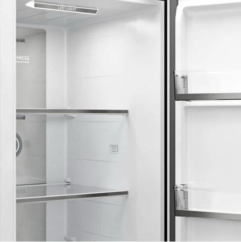 Свет рассредоточен по всему объему камеры, позволяя рассмотреть продукты на всех полочках. Кроме того, такая подсветка задействует минимальное потребление энергоресурсов.