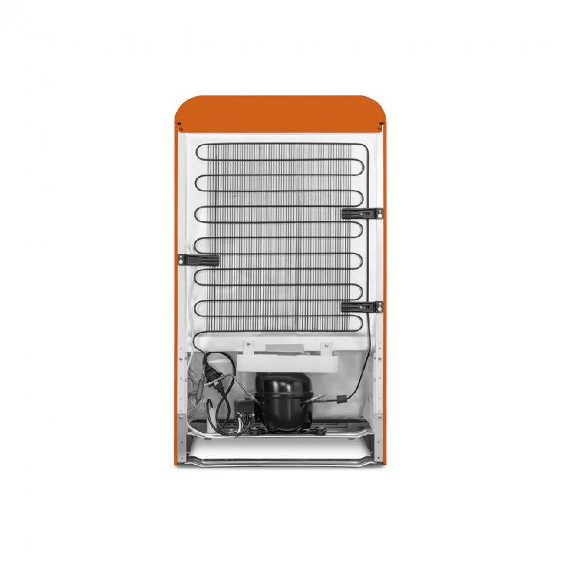 Яркий ретро-образ с современными решениями выделяет аппарат в интерьере и делает его не просто прибором, а дизайнерским акцентом. Оранжевый глянец корпуса привлекает взгляд и легко сочетается с контрастными или пастельными кухонными решениями. Компактные габариты 97—98×54,5×65,9 см помогают установить устройство в небольших помещениях и нишах, а глубина с ручкой 70,1 см учитывает выступ дверцы при планировке. Левый дверной упор определяет направление открытия, поэтому важно учитывать расположение мебели и свободное пространство для комфорта.