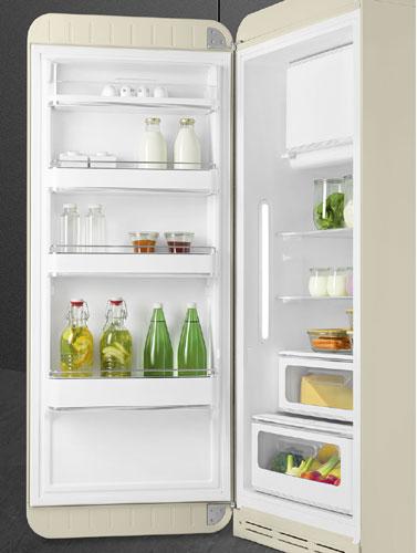 Холодильник в культовом цветном дизайне в стиле 50-х годов с внутренней морозильной камерой идеально подходит для придания индивидуальности кухне или гостиной, не жертвуя при этом эффективностью охлаждения и удобством практичного и функционального интерьера.