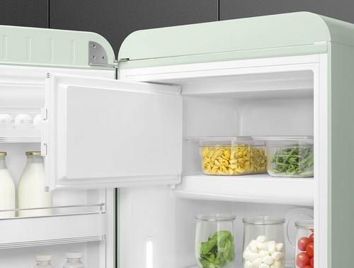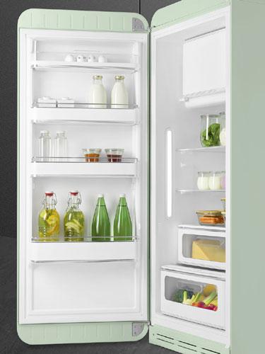 Холодильник в культовом цветном дизайне в стиле 50-х годов с внутренней морозильной камерой идеально подходит для придания индивидуальности кухне или гостиной, не жертвуя при этом эффективностью охлаждения и удобством практичного и функционального интерьера.