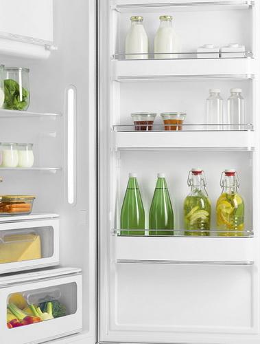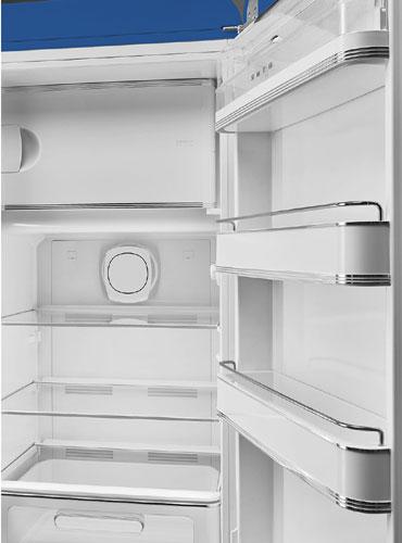 Холодильник в культовом цветном дизайне в стиле 50-х годов с внутренней морозильной камерой идеально подходит для придания индивидуальности кухне или гостиной, не жертвуя при этом эффективностью охлаждения и удобством практичного и функционального интерьера.