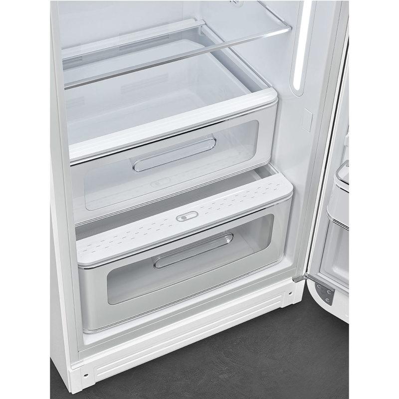 Холодильник SMEG FAB28RWH6 из серии Стиль 50-х г.г. выполнен в классическом белом цвете. Его дизайн отличается округлыми формами, гладкими линиями и характерными ручками, что создает атмосферу ностальгии и одновременно современного комфорта. Этот отдельностоящий холодильник станет ярким акцентом в любой кухне, подчеркнет индивидуальность интерьера и добавит ему шарма. Благодаря компактным размерам и стильному внешнему виду он отлично впишется как в классические, так и в современные кухни.