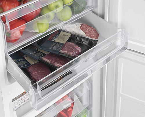 Зона свежести, оснащенная функцией контроля влажности, позволит подобрать оптимальный режим для хранения овощей, фруктов и других продуктов, требовательных к поддержанию особого микроклимата.