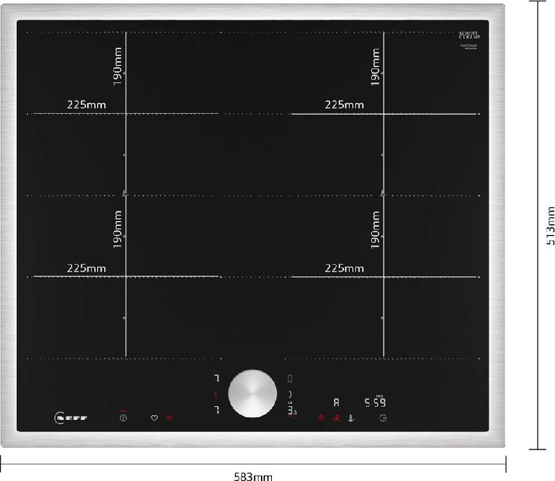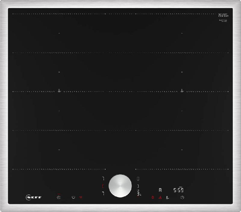 Индукционная варочная панель NEFF T66STY4L0 — это сочетание современного дизайна и передовых технологий, которые обеспечивают высокую эффективность и комфорт при использовании. Модель выполнена в черном цвете, что делает ее универсальным решением для любого интерьера. Прочная стеклокерамика удобна в уходе, рамка из нержавеющей стали подчеркивает стильный дизайн и обеспечивает дополнительную защиту краев. Установка осуществляется сверху на столешницу, благодаря особой форме рамки она проходит быстро и без сложнойстей. Схема монтажа прилагается к прибору, также вы можете скачать ее с нашего сайта. Прибор оснащен 4 индукционными конфорками каждая из которых имеет 17 уровней мощности. Правые и левые поля можно объединять благодаря инновационной функции FlexZone, это увеличивает гибкость использования и позволяет готовить блюда на овальных сковородах, в утятницах.