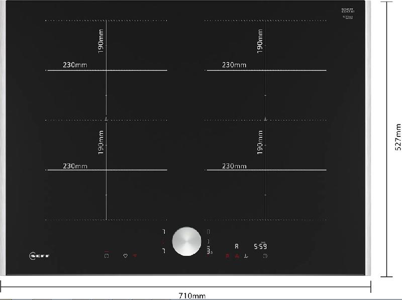 Панель Нефф T67TTX4L0 имеет 17 уровней мощности и цифровую индикацию выбранной ступени нагрева. Сенсор жарки FryingSensor с 6 температурными режимами позволяет четко выдерживать температуру от 70 °C до 220 °C. Также стоит отметить наличие ряда удобных и полезных функций. Быстрый старт QuickStart позволяет сразу после включения приступить к приготовлению пищи, а сохранение настроек пользователя ReStart дает возможность в течение 4 секунд восстановить приготовление на ранее выставленных параметрах. Нажатием на паузу Stop&Go можно приостановить процесс в случае необходимости. Встроенный таймер с функцией обратного отсчета и звуковым сигналом позволяет контролировать процесс приготовления и избегать перегрева блюд. Для безопасности пользователя панель оснащена блокировкой от детей, защитным отключением и главным выключателем. Кроме того, предусмотрена индикация остаточного тепла, что позволяет избегать неожиданных ожогов.