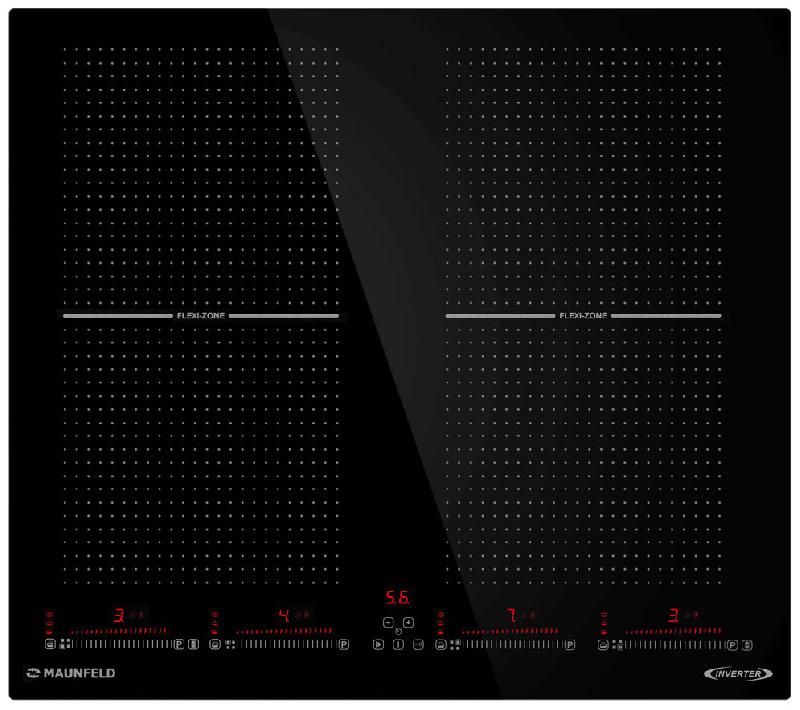 Flex Zone - представляет собой инновационную систему индукционных конфорок, которая обеспечивает полную свободу в использовании посуды любого размера, от турки до казана. Плита для нагрева задействует только ту поверхность, с которой соприкасается дно посуды и только там где вы ее поставили.