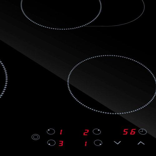 Одна из конфорок двухконтурная. Площадь нагрева можно регулировать в зависимости от диаметра посуды.