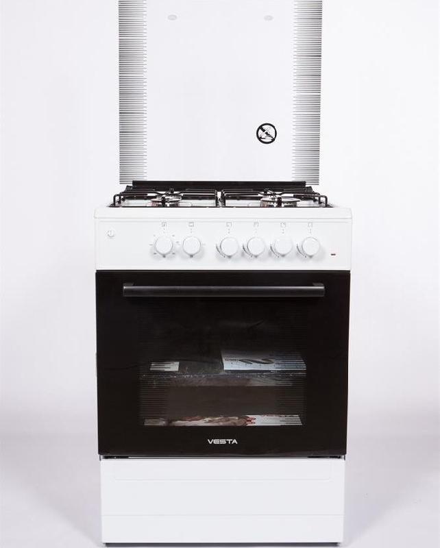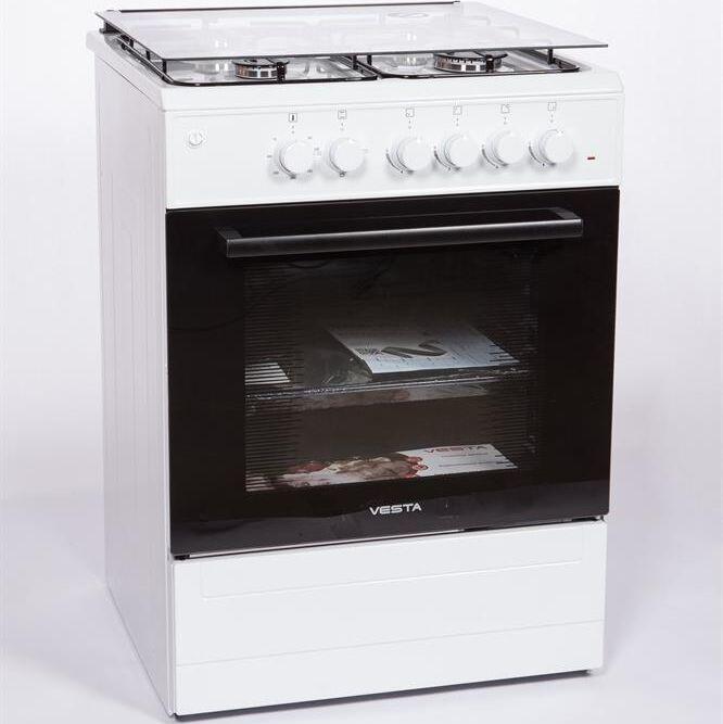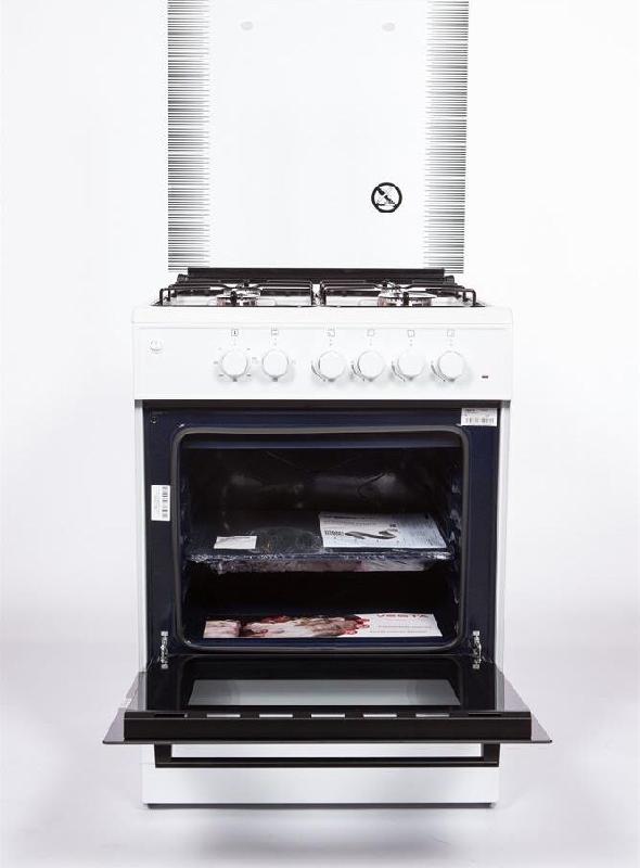 Габариты (ВхШхГ) см 85хх50х60. Горелки стола: Газовые 4 шт. Мощность горелок рабочего стола: Горелка передняя левая/правая 2,0/2,4 кВт. Горелка задняя левая/правая 2,0/1,0 кВт. Электрический духовой шкаф. Объем духовки в литрах: 65 л. Верхний/нижний нагреватель духовки тен.Решетка рабочего стола сталь. Крышка рабочего стола стекло. Термометр духовки. Кнопка электророзжига горелок стола. Электрическая подсветка духовки. Противень 2 шт.