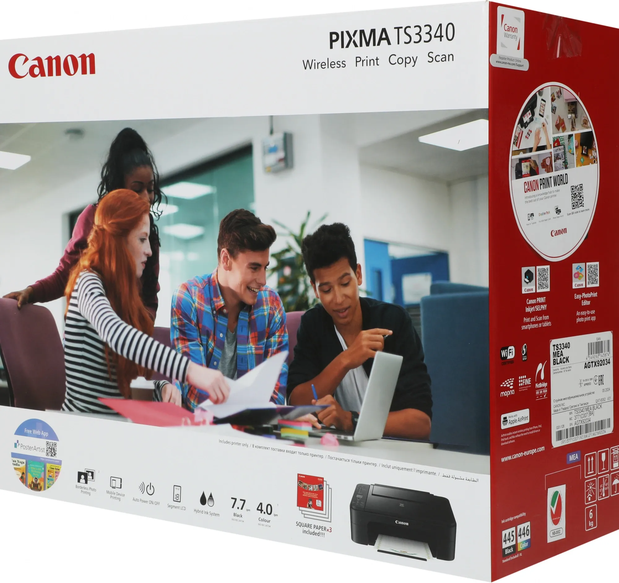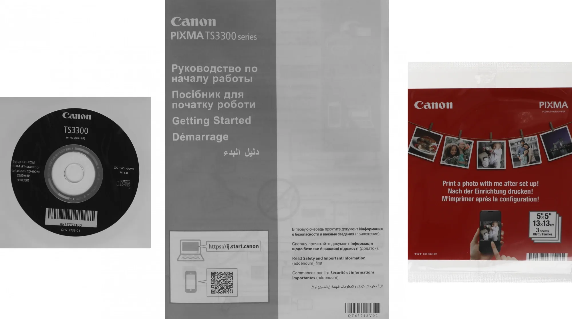 | Комплектация | Принтер «Все в одном» — PIXMA TS3340. Картриджи FINE. Кабель питания. Установочный диск CD-ROM (CD только для ОС Windows). Руководства пользователя и другие документы |