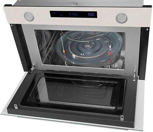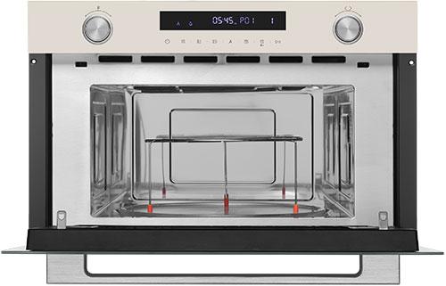 Встраиваемая микроволновая печь мощностью 2000 Вт. Передняя панель выполнена из стекла. Свет зажигается при открытии дверцы. Настройка программ и таймера осуществляется при помощи сенсорного дисплея.