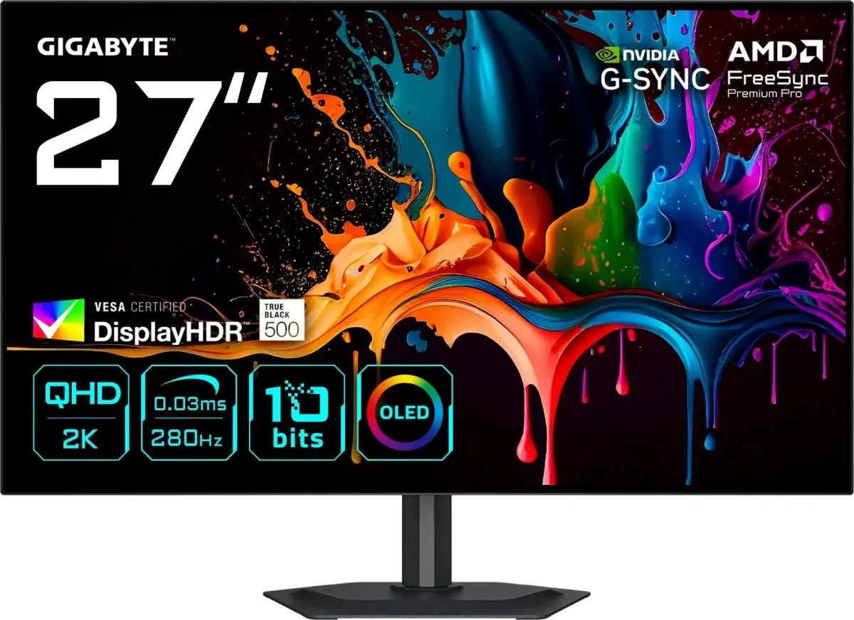 Монитор Gigabyte 27" MO27Q28G черный OLED LED 0.03ms 16:9 HDMI M/M матовая HAS Piv 1500000:1 335cd 178гр/178гр 2560x1440 280Hz DP 2K USB 6.7кг