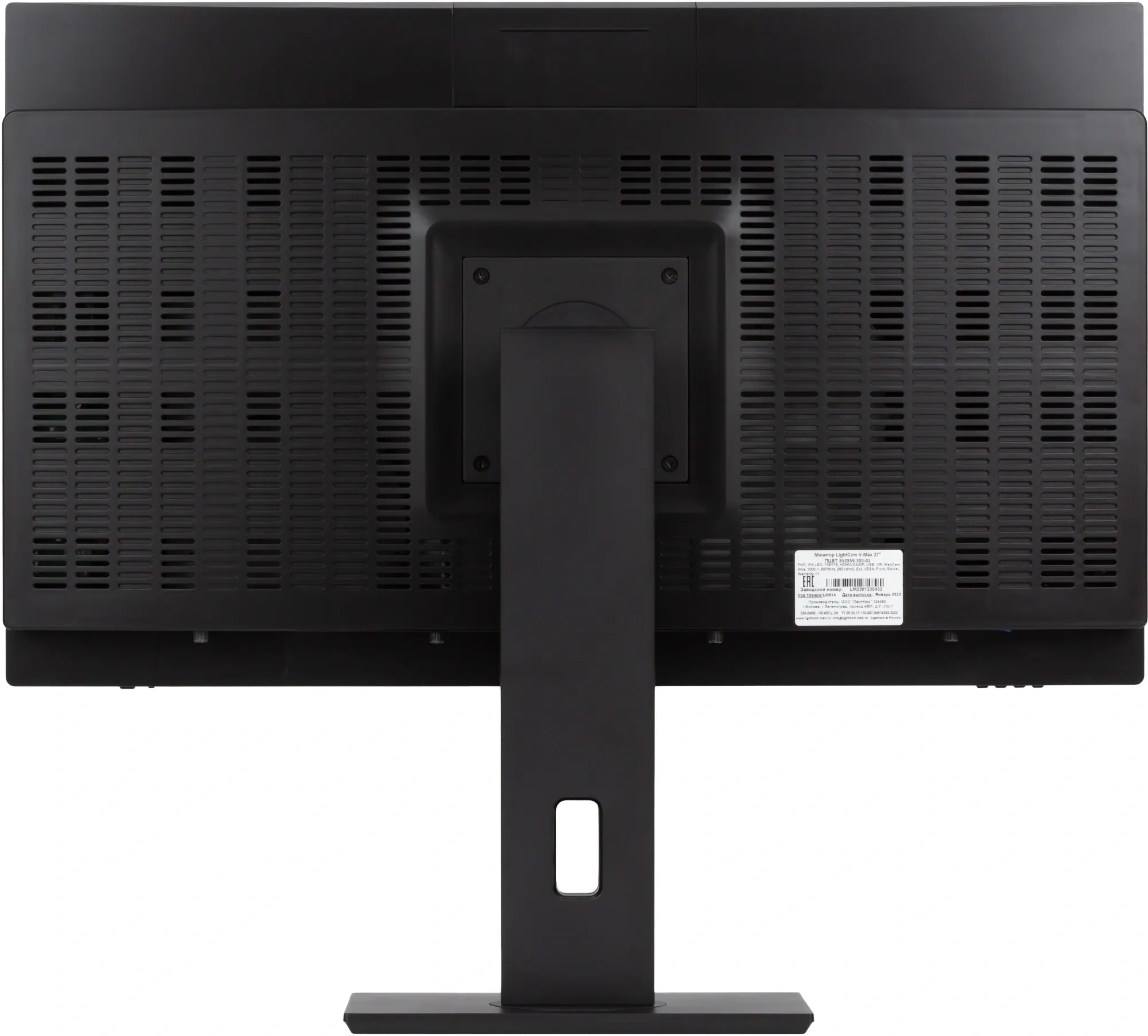 Монитор Lightcom 27" V-Max черный IPS 4ms 16:9 DVI HDMI M/M Cam матовая HAS Piv 300cd 178гр/178гр 1920x1080 75Hz VGA DP FHD USB 9.2кг (RUS)