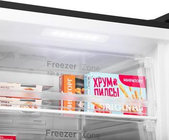 Инверторный мотор обеспечивает длительный срок эксплуатации устройства и снижает уровень шума во время работы прибора. Используемая система охлаждения No Frost — наиболее современный вариант, это позволит не размораживать камеру вручную, ведь на стенках и на полках не образуется наледи. Использовать устройство с такой системой — выгодно для экономии времени и удобно.