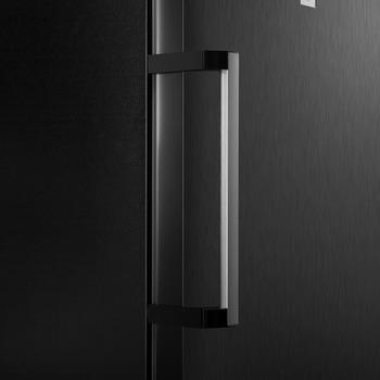 Морозильная камера Maunfeld MFFR185SB выполнена в стильном и современном дизайне. Благодаря простоте и лаконичности она будет отлично смотреться в комнате с любым интерьером — современным, классическим, авангардным. Устройство в универсальном черном цвете отлично сочетается с элементами серебристого цвета из нержавеющей стали. У прибора стандартные габариты: 185 сантиметров в высоту, 70 сантиметров в ширину и столько же в глубину. Для морозилки это оптимальные размеры для заморозки необходимого количества продуктов. При этом полезный объем в 380 литров — отличный показатель.