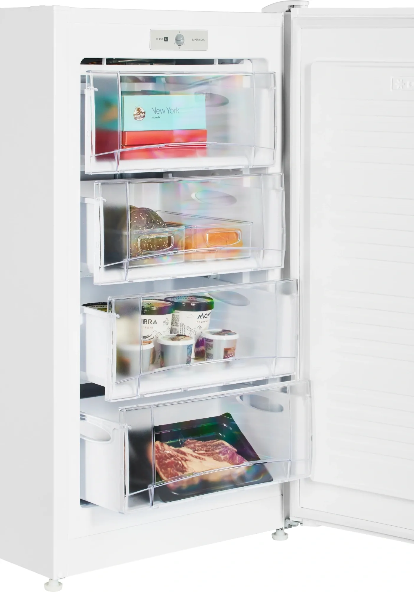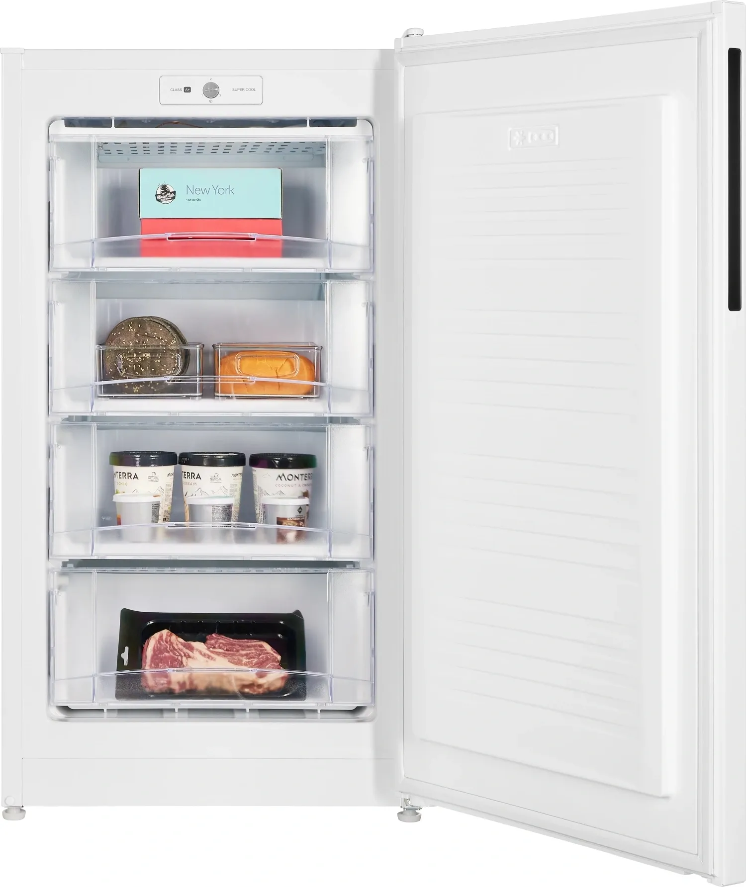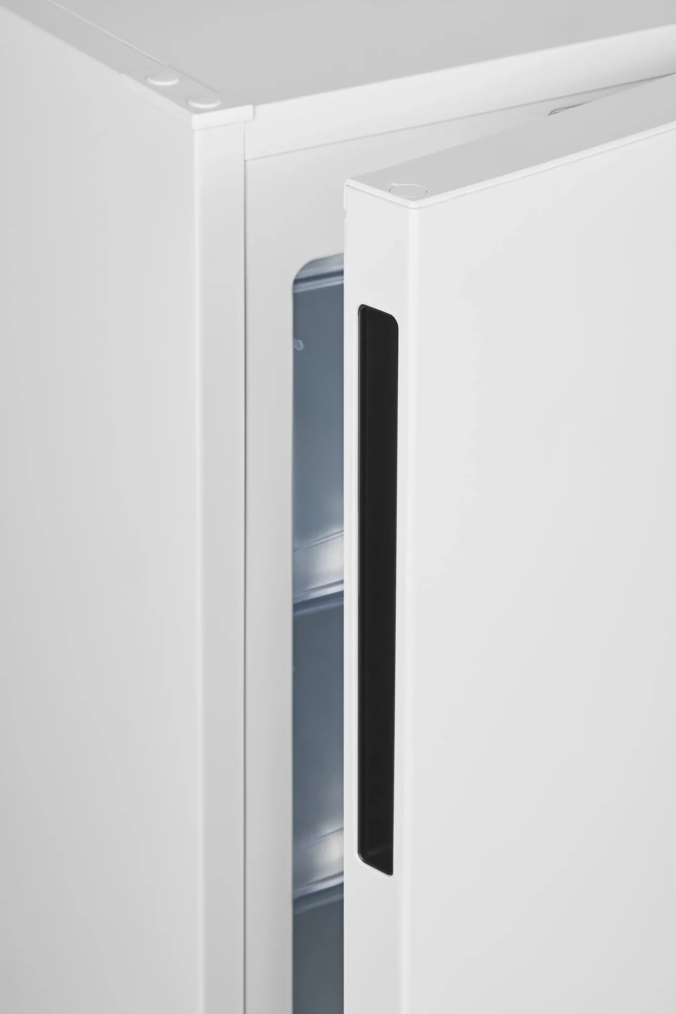 Морозильник с черной интегрированной ручкой и продуманным внутренним пространством станет стильным и технологичным акцентом на вашей кухне. Высота устройства 109 см. Для комфортного открытия и установки морозильника в удобном месте — дверь можно перенавесить с правой стороны на левую.