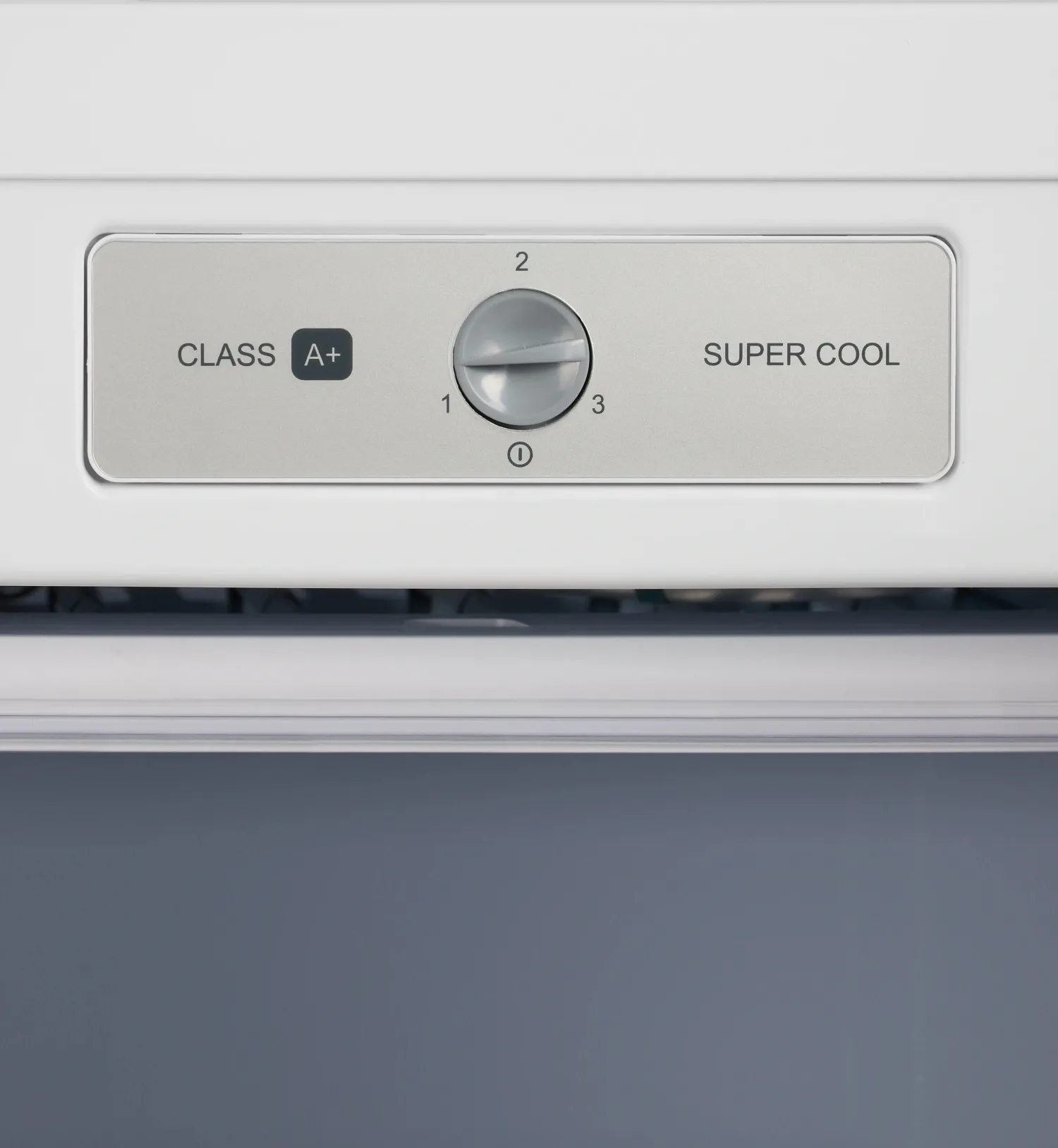 Панель управления модели расположена внутри камеры. Откорректировать температуру позволит механический термостат с 3 режимами заморозки, где «1» — самая высокая температура, а «3» — максимально низкая -18°С.