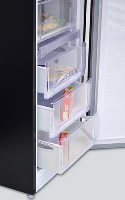 | Особенности | Ламинированная внутренняя поверхность холодильника с антибактериальным покрытием. Цельные пластиковые ящики с прозрачной шторкой в морозильной камере. Регулировка температуры с внутренней панели управ |
