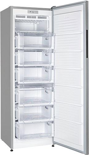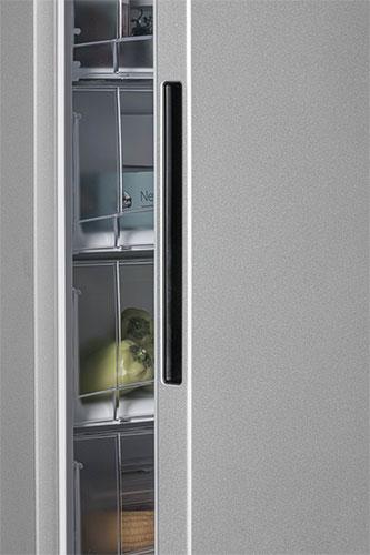 Морозильник серебристого цвета с черной интегрированной ручкой и продуманным внутренним пространством станет стильным и технологичным акцентом на вашей кухне. Высота устройства 1,737 м. Для комфортного открытия и установки морозильника в удобном месте - дверь можно перенавесить с правой стороны на левую.
