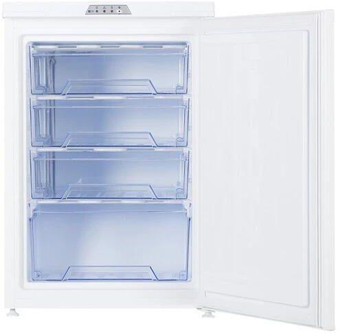 Габариты (ВхШхГ): 85х58x61см; Вес: 37кг; Объем: 110л; Класс энергетической эффективности: А; Климатический класс: N; Управление: электромеханическое; Размораживание морозильной камеры: ручное; Номинальная частота, Гц: 50; Потребление энергии: 239 кВт/год; Производительность замораживания, кг/сут: не менее 14; Перевешиваемые двери; Цвет: Белый