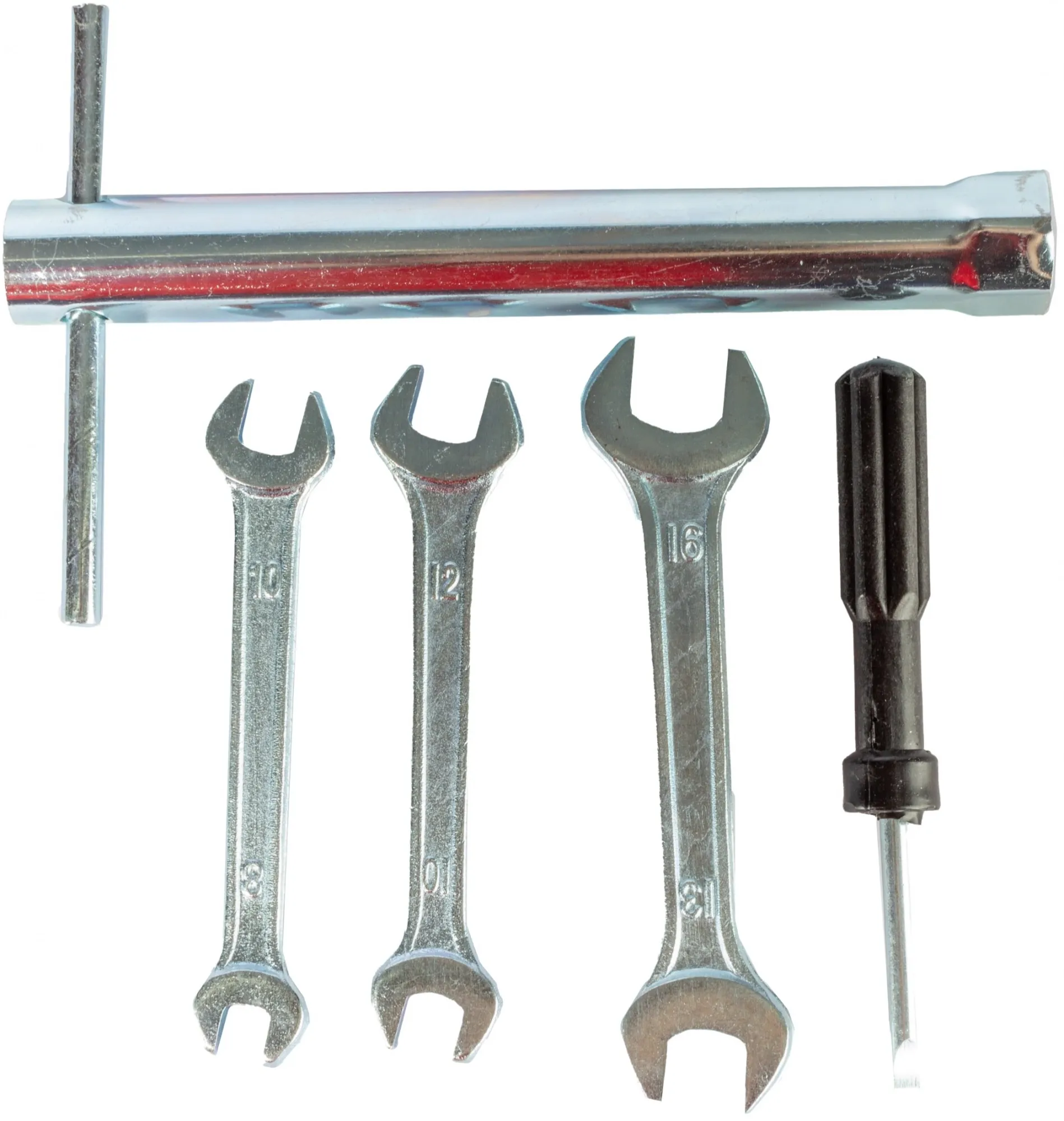 | Комплект поставки | Мотоблок, Фрезы (24 ножа), Полуоси для крепления фрез - 2шт, Сцепка с сошником, Крылья (щиток) - 2шт, Кронштейн передний, Кронштейн задний, Крепления 2 комплекта, Ключ гаечный - 3шт, Ключ свечной, Отв |