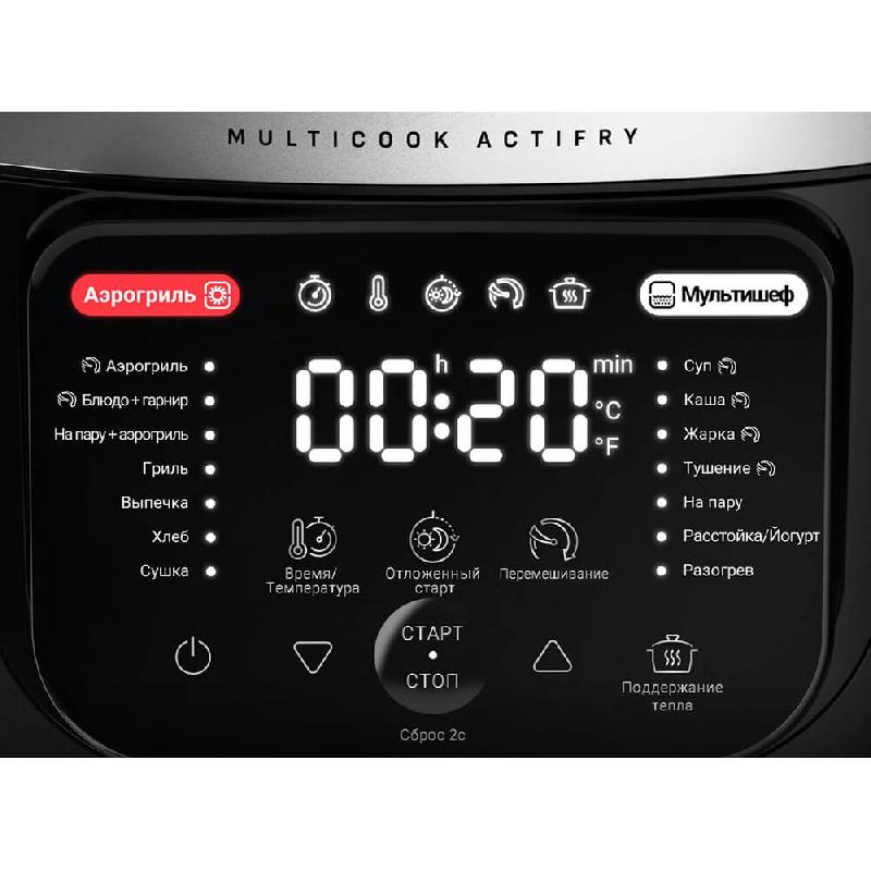 Интуитивно понятный интерфейс с цифровым дисплеем позволяет выбрать режим работы и программу, настроить температурный диапазон приготовления от 40°С до 200°С, установить время работы со звуковым оповещением, задать отложенный старт до 15 часов.