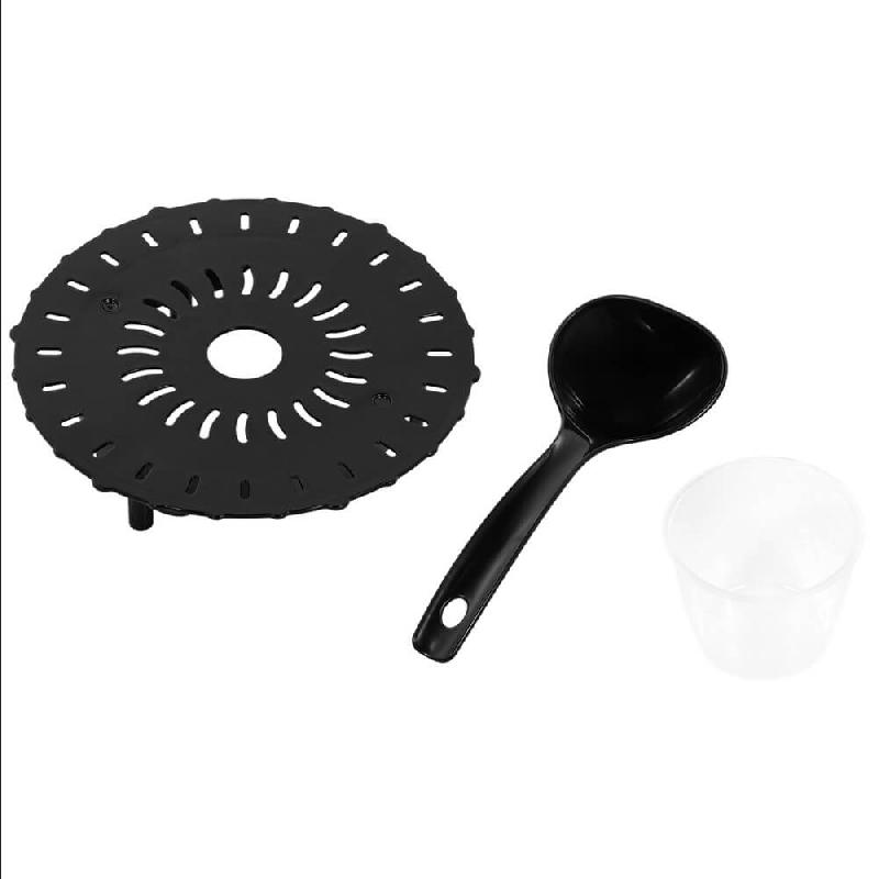 Кроме самой модели, в наборе предусмотрен контейнер для варки на пару, мерный стакан, лопатка и черпак. Плюс в комплекте есть и книга рецептов.