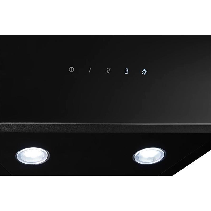 Вытяжка оснащена сенсорным управлением, что делает её использование удобным и интуитивно понятным. Сенсорные кнопки позволяют легко переключать режимы работы и регулировать скорость вентиляции. Всего доступно три скорости работы, что позволяет выбрать оптимальный режим в зависимости от интенсивности приготовления пищи.