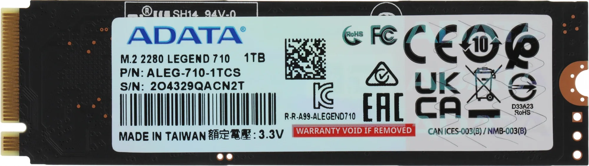 Накопитель SSD A-Data PCIe 3.0 x4 1TB ALEG-710-1TCS Legend 710 M.2 2280