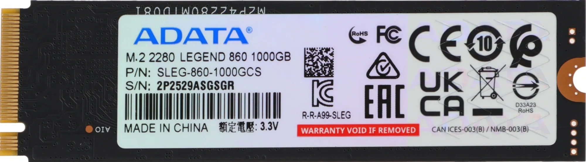 Накопитель SSD A-Data PCIe 4.0 x4 1TB SLEG-860-1000GCS Legend 860 M.2 2280