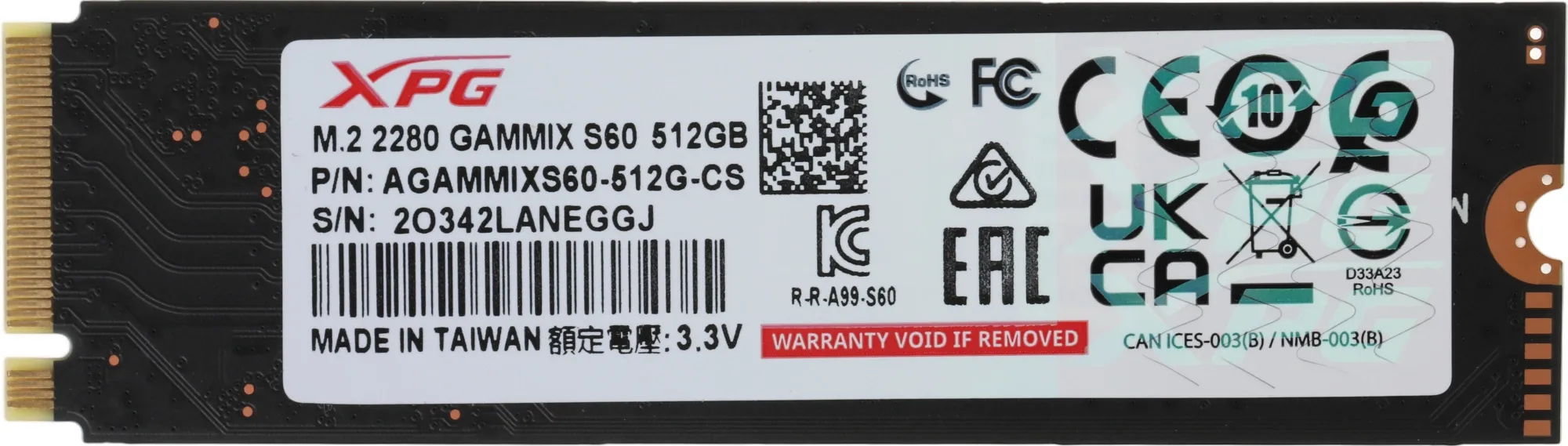 Накопитель SSD A-Data PCIe 4.0 x4 512GB AGAMMIXS60-512G-CS Gammix S60 XPG M.2 2280