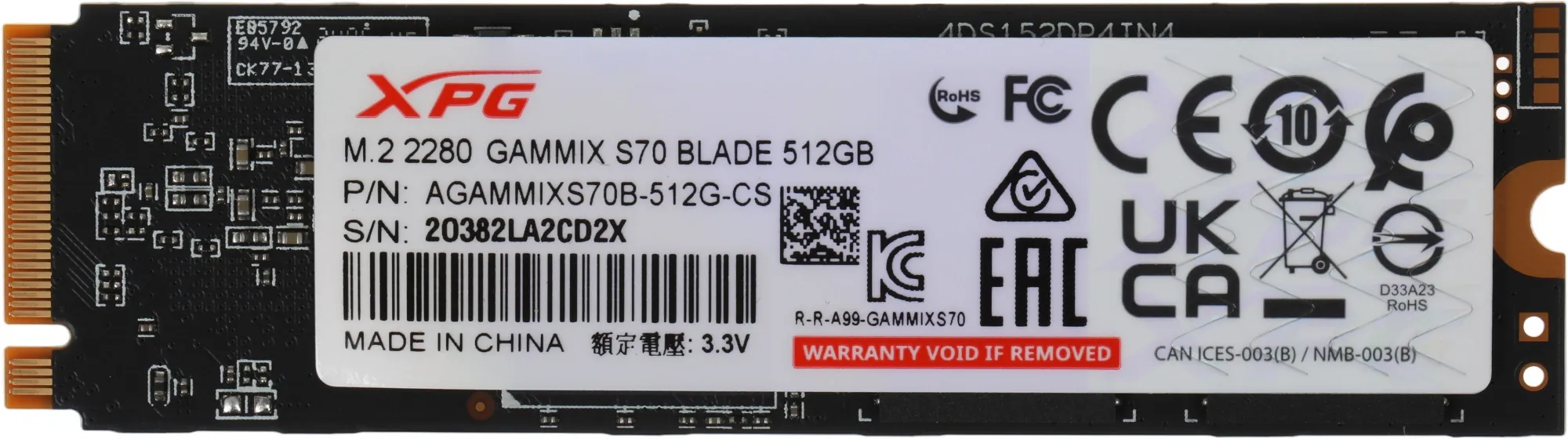 Накопитель SSD A-Data PCIe 4.0 x4 512GB AGAMMIXS70B-512G-CS XPG Gammix S70 Blade M.2 2280