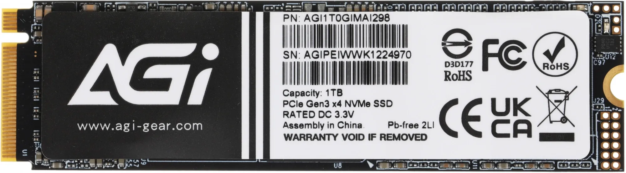 Накопитель SSD AGi PCIe 3.0 x4 1TB AGI1T0GIMAI298-CB AI298 M.2 2280