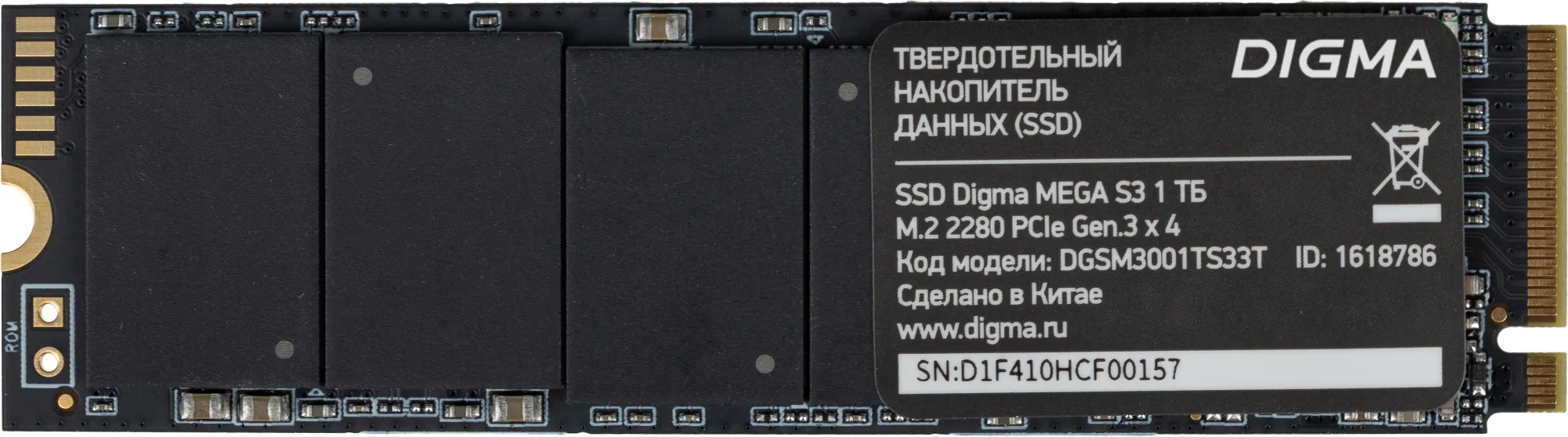 Накопитель SSD Digma PCIe 3.0 x4 1TB DGSM3001TS33T Mega S3 M.2 2280
