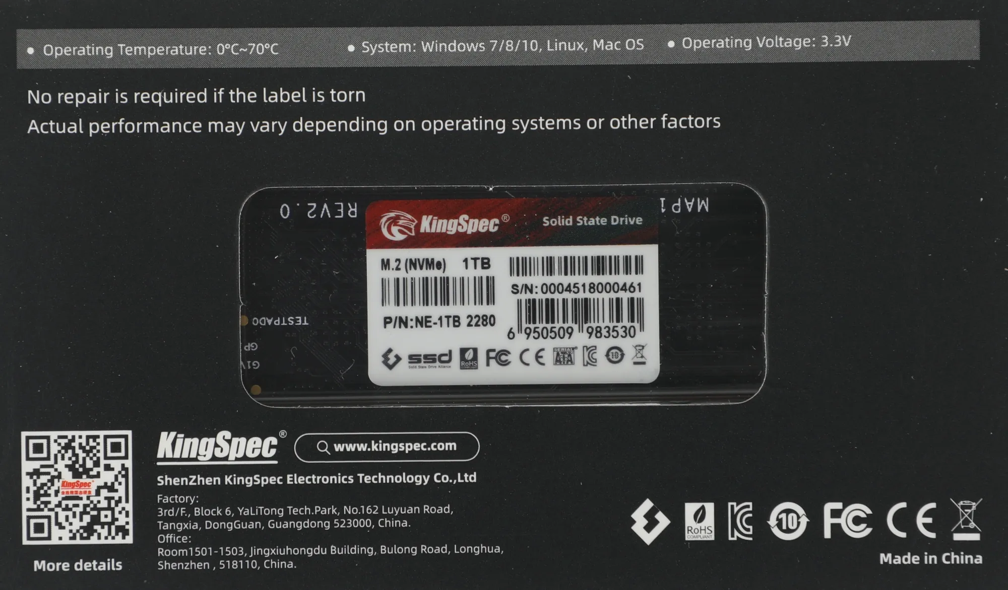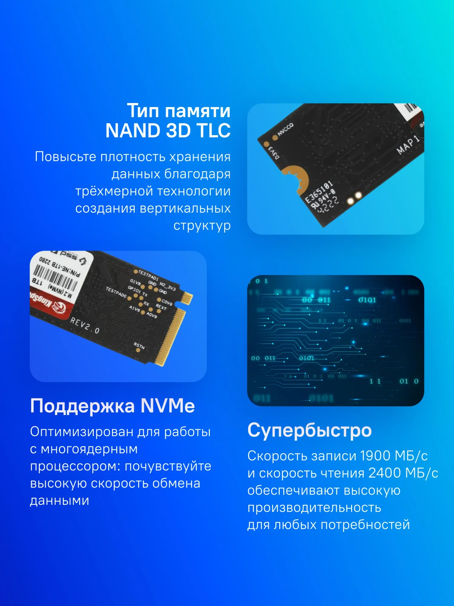 Накопитель SSD Kingspec PCIe 3.0 x4 1TB NE-1TB M.2 2280