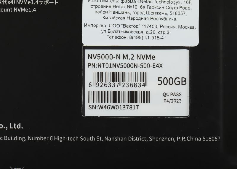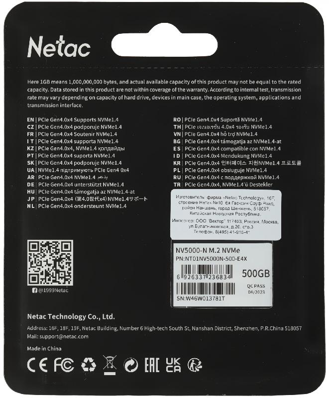 Накопитель SSD Netac PCIe 4.0 x4 500GB NT01NV5000N-500-E4X NV5000-N M.2 2280