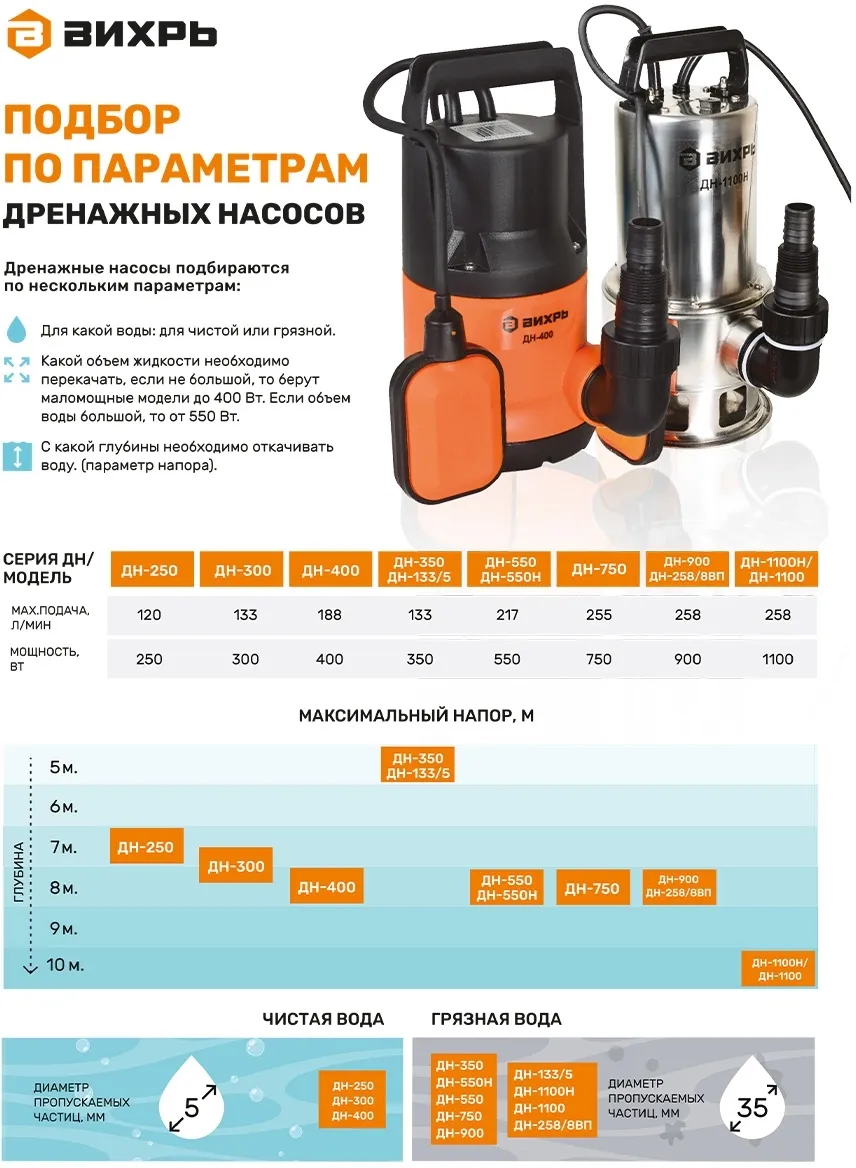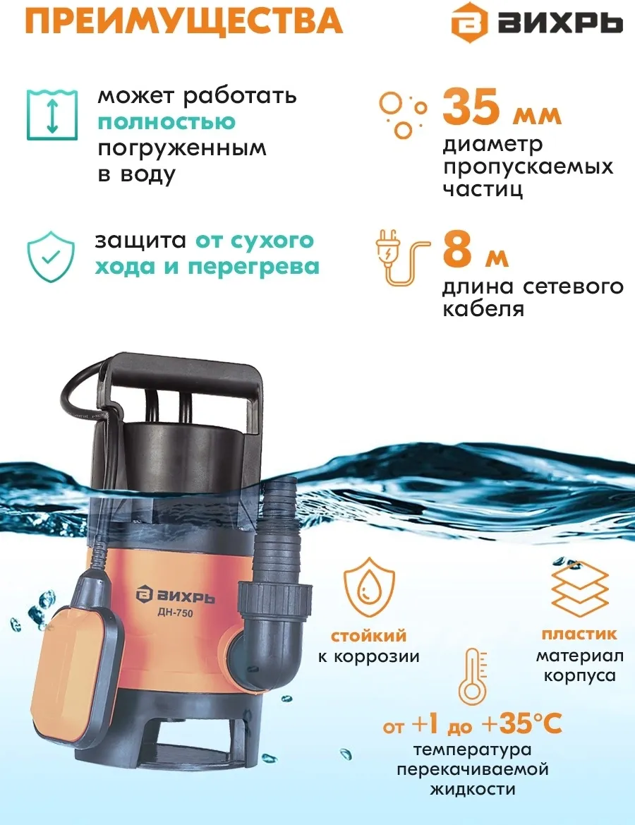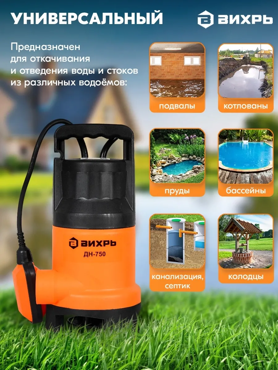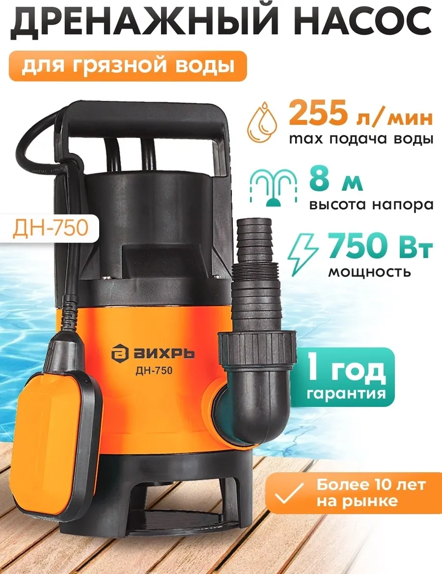 Насос дренажный Вихрь ДН-750 750Вт 15300л/час (68/2/2)