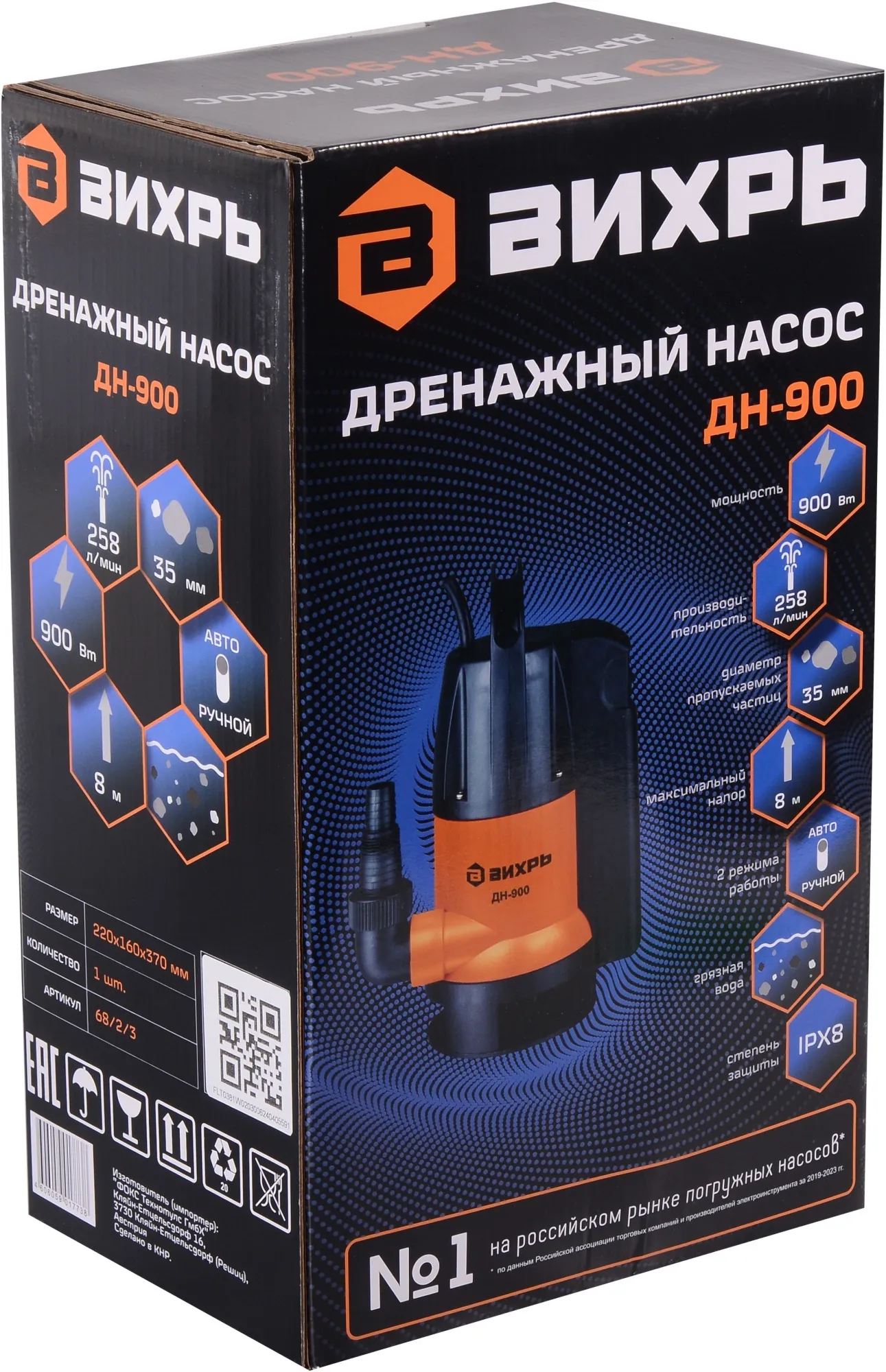 Насос дренажный Вихрь ДН-900 900Вт 15480л/час (68/2/3)