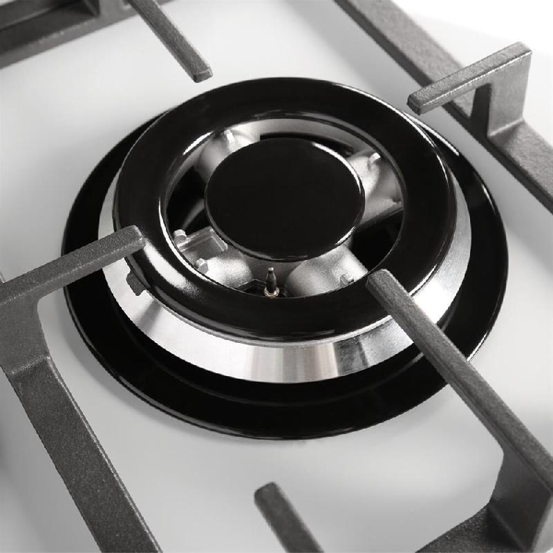 Размеры монтажного проема, ШхГ, см 55,4 х 48,6. Ширина, см 60. Глубина, см 52,5. Высота, см 10. Цвет модели Белый. Материал варочной поверхности Стекло. Материал решеток варочной поверхности Чугун. Двухзонная горелка варочной поверхности. Газ-контроль горелок стола. Электророзжиг горелок стола встроен в ручки. Управление конфорками стола Механическое. "Фиксированное положение ""малое пламя"".