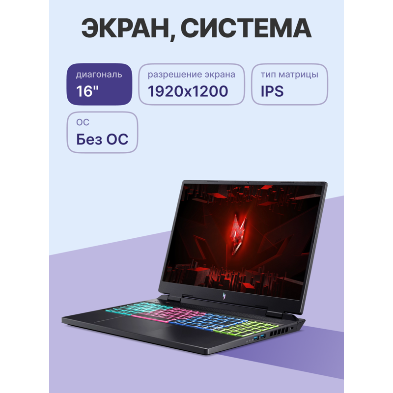 | Экран (подробно) | 16", WUXGA (1920х1200), IPS, 16:10, 165 Гц, покрытие матовое |