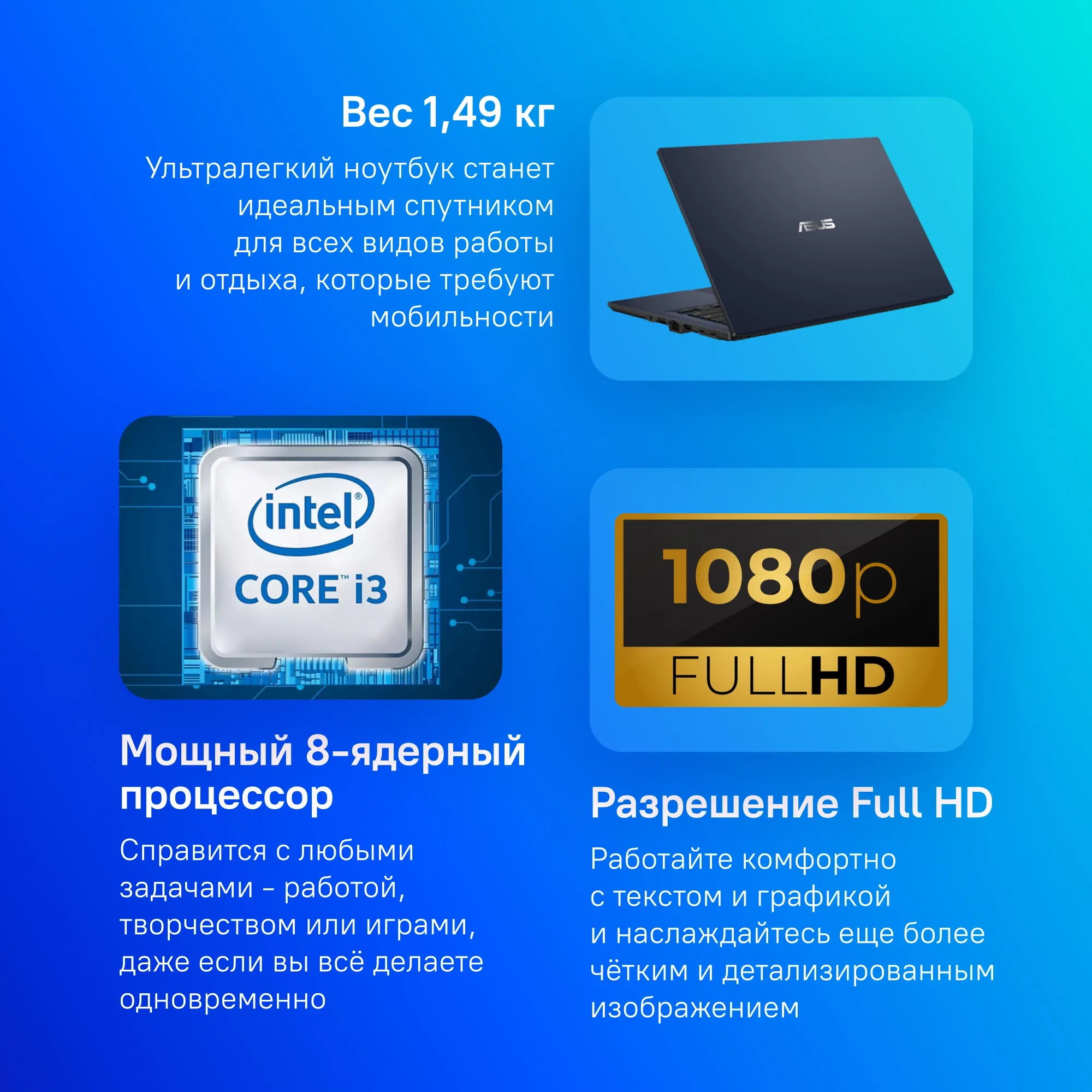 Ноутбук Asus ExpertBook B1 B1402CGA-NK0293XA Core i3 N305 8Gb SSD256Gb Intel UHD Graphics 14" TN FHD (1920x1080) Windows 11 Pro black WiFi BT Cam (90NX0611-M00AN0)