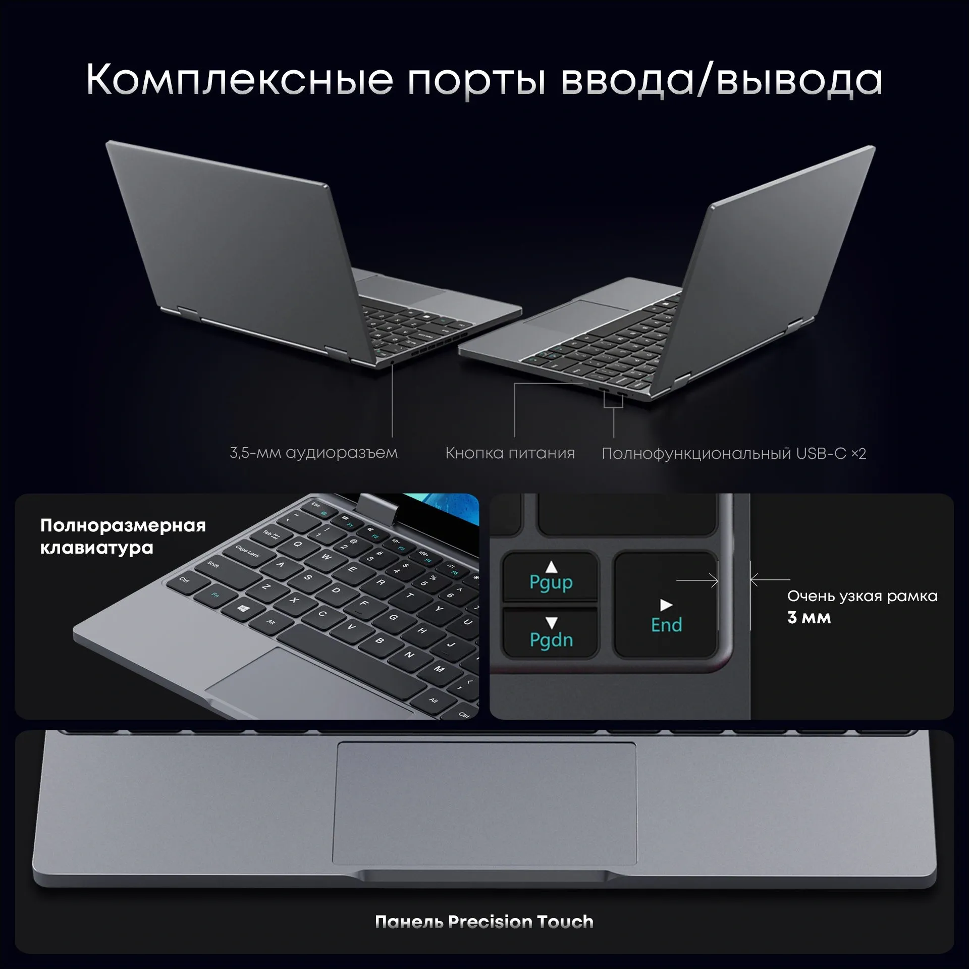 Ноутбук Chuwi MiniBook X N-series N150 16Gb SSD512Gb Intel Graphics 10.51" IPS Touch FHD+ (1920x1200) Windows 11 Home grey WiFi BT Cam 3800mAh (CWI558-P52N5N1HDMXX)