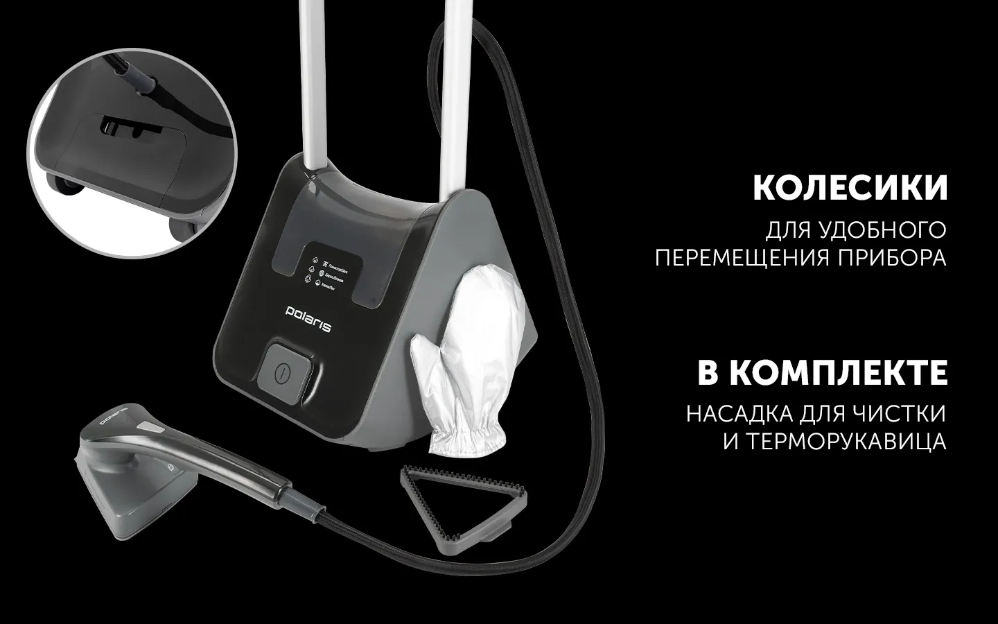 | Особенности | Колесики для удобного перемещения прибора; гладильная доска Expert BoardPRO; насадка для чистки и терморукавица в комплекте; удобный отсек для хранения шнура |